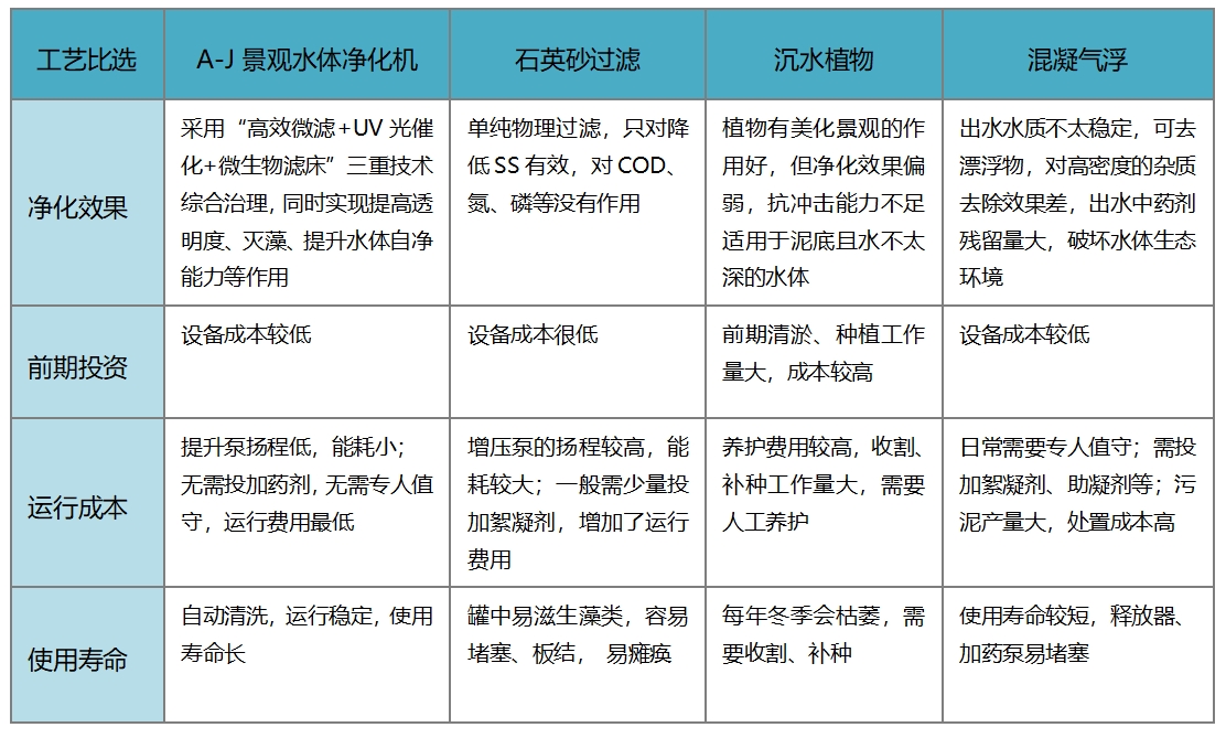 愛笛A-J景觀水體凈化機與其他景觀水凈化工藝的比選